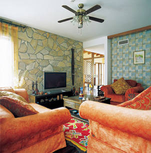 在現(xiàn)代的居家裝潢中,設(shè)計(jì)師更多地建議電視背景墻選用紋理粗糙的文化石鑲嵌,這樣既可以吸音,又加厚了墻體,減低了音響對(duì)其他居室空間的影響,而且能烘托出設(shè)計(jì)獨(dú)特的現(xiàn)代家電的精致感,形成強(qiáng)烈的質(zhì)感對(duì)比。倘若客廳空間面積較大,也可用文化石制作一面古典風(fēng)情濃郁的主題墻,使客廳裝潢在精致中流露出一絲隨意;蚴窃陉柵_(tái)營(yíng)造頗具田園風(fēng)格的一角。同時(shí),也要注意文化石的主要作用就是裝飾點(diǎn)綴,不要濫用,否則會(huì)適得其反。