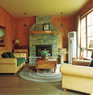 表面凹凸不平顏色夾雜的文化石所裝點(diǎn)的壁爐,不經(jīng)意間使人回到了早已相隔重重的中世紀(jì)。